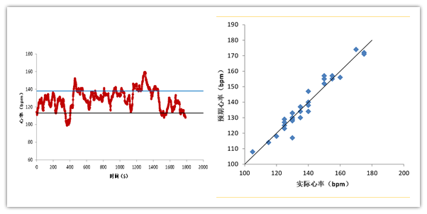 (1)一次運動心率曲線 (2)預期心率與實際心率的散點圖