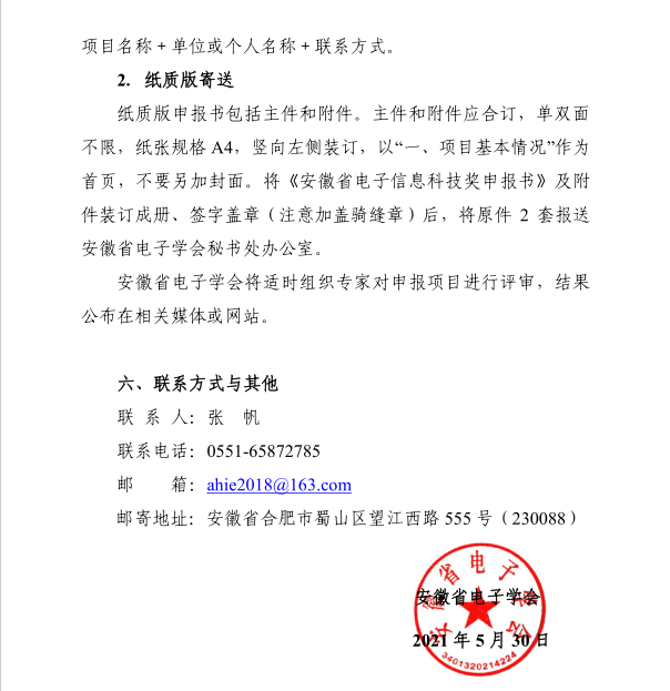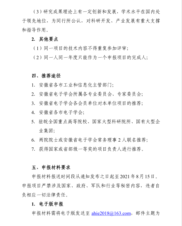 附件二:2021 年安徽省電子信息科技獎申報書——技術發明獎(樣表)